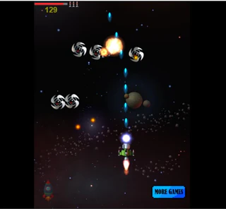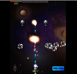 Управление в игре мышью. Собирай падающие ракеты, чтобы было чем стрелять.