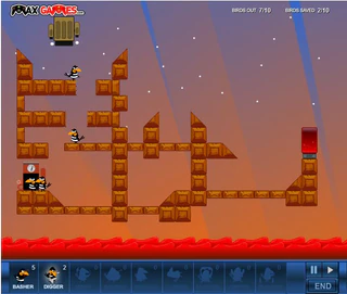 Любите животных? А птичек? А плохих птичек? К чему эти вопросы? Да к тому, что в новой флеш игре Bad Birds вам предстоит помочь птичкам выбраться из тюрьмы. Птички идут разными дорогами, иногда они очень опасны, и птички могут пораниться и даже умереть, поэтому вы должны помогать им, давая им специальные изобретения. Но учтите, что специальные изобретения не бесконечны, так что берегите их, не тратьте зря. В игре можно создавать собственные уровни и играть в уровни, созданные другими игроками. Ну что стоите? Птички небось заждались, а вдруг они сейчас упадут? Скорее на помощь!