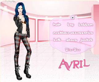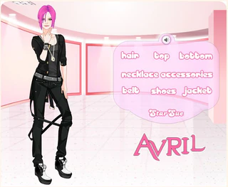 Ты любишь звёзд? Всегда хотела стать подругой какой-нибудь звезды? А как ты относишься к Avril Lavigne? К чему этот вопрос? А к тому, что в новой игре одевалке Avril Lavigne Style ты станешь её подругой. В игре ты будешь не только подругой, но и сможешь помочь Avril выбраться очередной наряд на очередную тусовку. Ты то давно выбрала себе наряд, а вот твоя подружка уже забыла в чём она уже была там, в чём нет, поэтому на попросила тебя вспомнить. Ты вспомнила, нашла ещё неиспользованные вещи и решила помочь ей выбрать наряд и причёску. Ну, начинай!