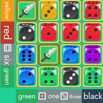 Война кубиков (Dices War) разворачивается на зелёном сукне игрового стола. У вас простая цель – набрать больше победных очков, чем соперник. Посмотрите на поле: сбоку и снизу есть условия для размещения костей. Если вы будете соблюдать эти требования, получите заветные очки. Но из-за фактора случайности и вражеских атак иногда приходится ходить впустую.
