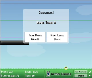 В любите играть за улыбающиеся рожицы? Впрочем это не так уж важно, так как улыбающаяся рожица хочет, чтобы вы поиграли за неё. В логической игре EenieBounce вам предстоит управлять нашей улыбающейся рожицей, но это будет не так уж просто. Вам нужно собрать все звёздочки, но при этом вы не должны уронить шарик на землю. А поможет вам специальная платформа, которая будет отталкивать шарику до линии такого же цвета. Но платформы не вечны, каждый удар об них шарика отнимает у них жизнь, когда жизни кончаются, они исчезают. Количество жизней указано на платформе. В игре можно управлять с помощью мышки или клавиатуры. Желаем приятной игры!