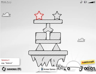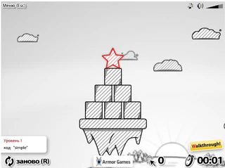 В новой логической игре "Redstar Fall" вам нужно будет убирать различные белые в чёрную полосочку объекты, чтобы звёздочка в красную полосочку добралась до нижнего яруса и продержалась на нём некоторые время. В игре есть секундомер, поэтому, чем быстрее вы выполните задачу, тем лучше, так как вам дадут больше очков. Также вам следует делать меньше кликов, так как за меньшее количество кликов дают большее количество очков. Вам не обязательно убирать с нижнего уровня все предметы, главное, чтобы звёздочка попала на него и продержалась определённое время. В игре замечательная графика и звук, также вы можете включить в игре русский язык и пройти обучение, если потребуется. Желаем удачи!
