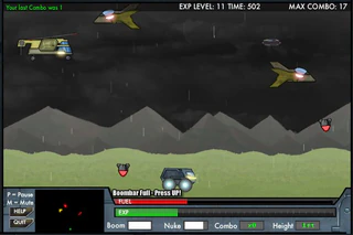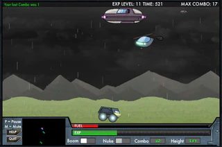 В новой увлекательной и затягивающей аркаде "In3structo Tank" вы будите управлять машинкой. С неба на вас будут падать бомбы, которые сбрасывают вражеские бомбардировщики. Но вы не должны их бояться, так как ничто не сможет пробить вашу броню, поэтому старайтесь поймать бомбу, подпрыгнуть на ней и сбить бомбардировщик. Также у вас есть специальные способности, которые позволяют очистить карту от вражеской техники или просто подпрыгнуть. Постарайтесь прыгать на авиации противника как можно дольше, чтобы набрать самую длинную серию прыжков. Желаем удачи!