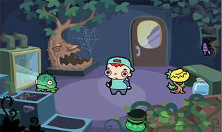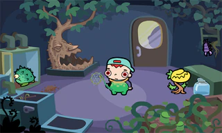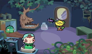 !! Палку-паутину (сачок) закрепить на ручке двери. Закрыть дверь за зеленой Милашкой, слева. Затем открыть и забрать кусочек коричневого. Отдать фиолетовому рачку. И постучать в дверь. А там хватай банку и лей в дерево. Взять помпу и поставить в бачок унитаза. И "СМЫВАЙСЯ"