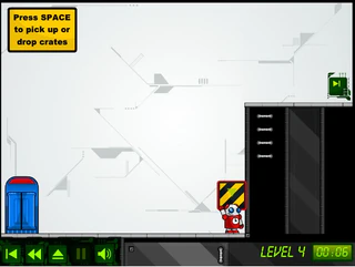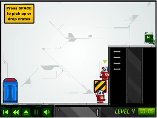 Как насчёт путешествия во времени? Вот вот, и наш герой из логической игры "Chronotron" не отказался от этого. Только всё это делает он ради специальных кнопочек. Зачем они ему? Просто наш герой коллекционировал много музыкальных плееров. Когда он переносил их на новое место, все плееры упали, и кнопочки выпали, вот наш герой и пытается их вернуть. Но это довольно сложная задача, так как все кнопочки охраняются специальными приспособлениями. А кто их придумал? Один маленький злобный гений. Ну ладно, поможем нашему герою, иначе он будет переживать. Вам нужно сначала выполнить все действия, потом зайти в "Будку Времени" и перенестись во времени назад. Вы увидите свою копию в прошлом, которая будет в точности повторять все ваши предыдущие действия. А вы во время этого должны будете добраться до кнопочки, а потом до будки. Желаем удачи!