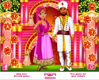 Игр на подбор свадебной одежды очень много. Но тебе предоставляется возможность побывать на индийской свадьбе. Попытай счастье и окунись в мир вечной любви. Традиционно для свадьбы в Индии характерны татушки написанные хной, увешанные драгоценностями покрывала. В этой игре управление самое простое – тебе необходимо выбрать часть одежды в блоке и мышью перебирать, чтобы поменять на ней одежду. Вперед в таинственную Индию!