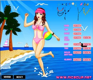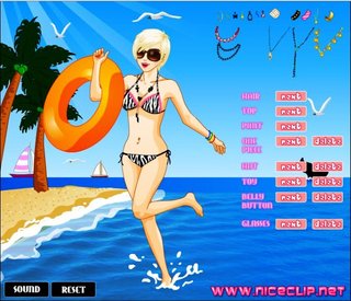 Солнце, песок и пляж... вот самые заветные мечты у нашей героини. Перебирая различные группы одежды и аксессуаров, ты здорово поможешь молодой красавице классно отдохнуть. В игре можно выбрать лиф, плавки, купальник, принадлежности пляжные... и всего-то тебе нужно только подобрать все под тон. Помоги ей красиво отдохнуть.