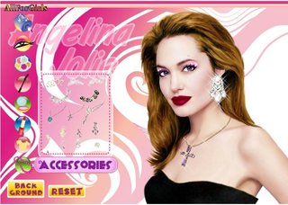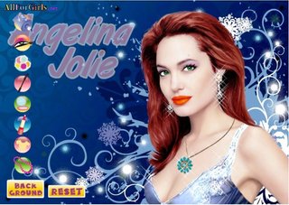 Путешествуя в мир игры Анджелина Джоли, ты сможешь почувствовать себя помощницей певицы. Для этого тебе нужно просто выбрать прекрасный майкап и бижутерию для одной из почитаемых и обожаемых артисток на планет. Останови свое предпочтение на лучшей косметике, можешь даже поменять тон глаз и цвет волос Анджелины на свой вкус. Подбери к свежему стилю актрисы утонченные драгоценности и стильную одежду.