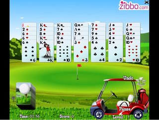 Главный герой нашей новой игры пасьянс гольф Джокер любит играть в гольф, а перерывах он раскладывает пасьянсы. В гольф он играет прекрасно, поэтому в этом плане ему ваша помощь не нужна. А вот с пасьянсами дела у него обстоят намного хуже... Вам нужно преподать нашему гольфисту пару уроков, за дело!