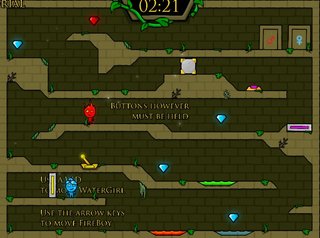 В серии 5 элемент (Fireboy and Watergirl 5) парочка путешествует по мрачному подземелью. Чтобы пройти уровень, ты должен собирать драгоценные камни и помогать напарнику. Будь предельно внимателен, на уровнях встречаются изощренные ловушки, в которые лучше не попадать.