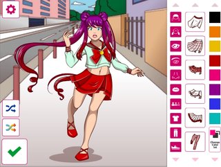 В этой одевалке в стиле аниме можно выбирать прическу и выражения лица, а также менять цвет волос и одежды.