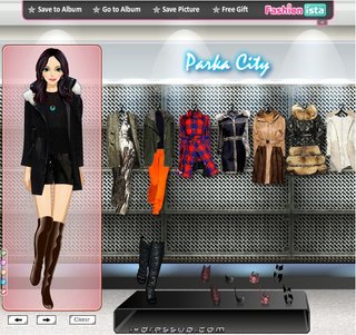 В одевалке Девушка в парке осень только начинает набирать свои обороты. Сара решила обновить свой гардероб в модном бутике с известным брендами одежды. Помоги ей определиться и не прогадать: ведь вещи должны быть не только стильными, но и тёплыми. Яркие аксессуары добавят изюминки и разбавят образ. Также нужно решить вопрос с макияжем: в зависимости от выбранного комплекта одежды, он поможет правильно расставить акценты и подчеркнуть красоту Сары. Удачи!